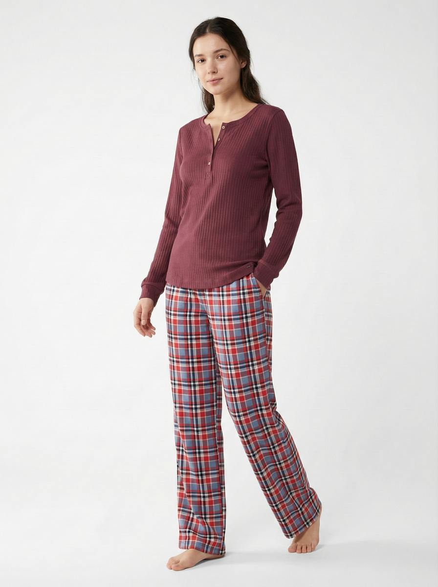 Կանացի Հավաքածու Շապիկ Վանդակավոր Տաբատով