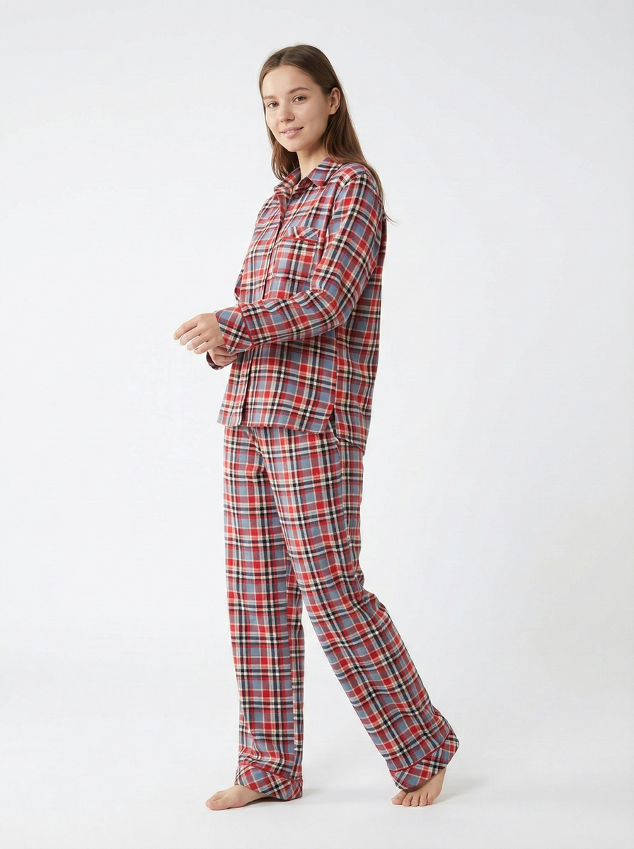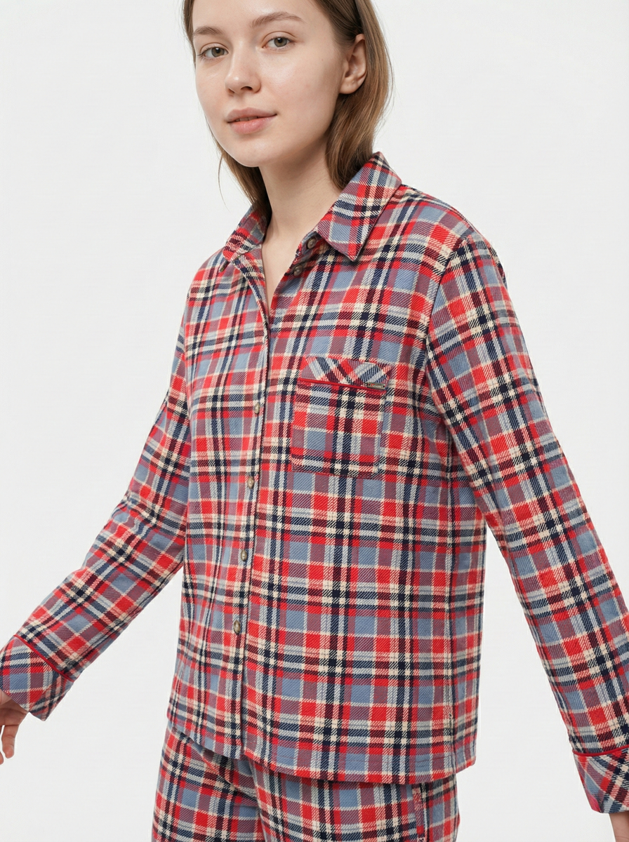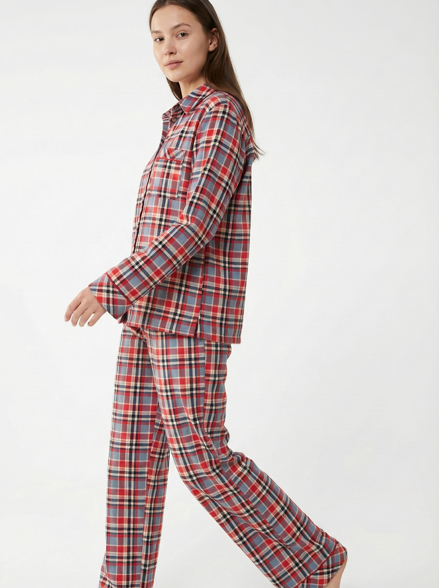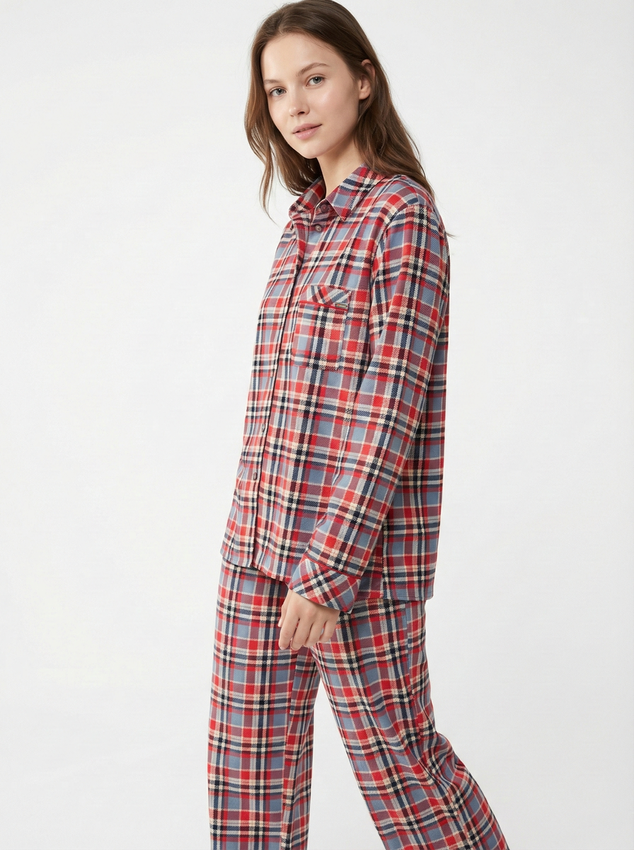 Կանացի Հավաքածու Վանդակավոր Վերնաշապիկ Տաբատով